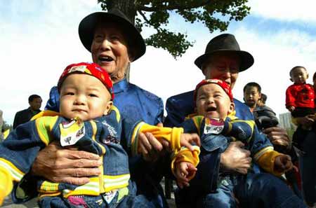 事件:600對(duì)雙胞胎受邀參加北京第二屆雙胞胎文化節(jié),其中最大的是一對(duì)88歲的兄弟,最小的還未滿(mǎn)月。