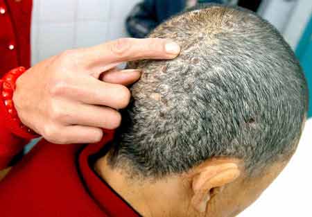 被馬蜂蜇過(guò)的人都得剃光頭發(fā)接受治療,而且可能會(huì)留下痕跡。年過(guò)半百的黃志能伸出被馬蜂蜇得像麻花一樣的雙手。他說(shuō),做夢(mèng)也沒(méi)想到,這樣的不幸會(huì)降臨在自己頭上!斑@些馬蜂真的怪,好像和人結(jié)了仇一樣。我活了50年,從沒(méi)見(jiàn)過(guò)這么多馬蜂如此頻繁地攻擊人。我住院近一個(gè)月,起碼有20個(gè)遂寧人被馬蜂蜇后住進(jìn)了醫(yī)院,我親眼看見(jiàn)兩條生命從眼前消失。”黃志能傷心地說(shuō)。