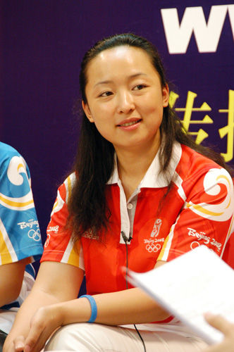 7月21日,北京奧組委志愿者部觀眾服務(wù)處黃可瀛副處長接受新華網(wǎng)專訪。王翰林 攝