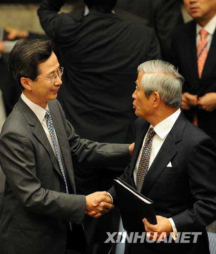 6月12日,韓國(guó)常駐聯(lián)合國(guó)代表樸仁國(guó)(左)和日本常駐聯(lián)合國(guó)代表高須幸雄在會(huì)后握手。當(dāng)日,聯(lián)合國(guó)安理會(huì)一致通過(guò)第1874號(hào)決議,對(duì)朝鮮5月25日進(jìn)行核試驗(yàn)表示“最嚴(yán)厲的譴責(zé)”,并要求朝鮮今后不再進(jìn)行核試驗(yàn)或使用彈道導(dǎo)彈技術(shù)進(jìn)行任何發(fā)射。 新華社記者申宏攝