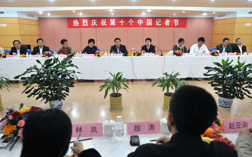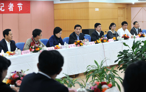 ????在第十個中國記者節(jié)到來之際,昨日上午,市委副書記、市長夏耕到青島市廣播電視局看望了節(jié)日期間正在工作的新聞工作者,向大家致以節(jié)日的親切慰問,并與青島日報報業(yè)集團、青島市廣播電視局、青島出版集團的部分記者座談。市委常委、宣傳部長王偉陪同看望并參加座談。