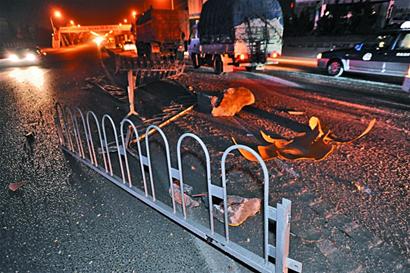 ????早報(bào)訊 隨著緊急剎車聲和連續(xù)的碰撞聲,跌跌撞撞的白色面包車在路上跑出“之”字形,20多米長(zhǎng)的護(hù)欄被撞倒在地,面包車撞在海爾立交橋橋邊護(hù)欄上,副駕駛座位上渾身是血的男青年被拖出車外。“前不久一名懷孕9個(gè)月的孕婦乘坐的轎車也在這段路上被撞,這都是對(duì)面汽車大燈晃眼惹的禍?!鼻疤煲估?時(shí)20分左右,海爾立交橋下橋路段再次發(fā)生車禍,途經(jīng)此處的目擊者稱。 ????面包車失控撞倒20米護(hù)欄 ?? ????記者聞?dòng)嵹s到現(xiàn)場(chǎng)看到,在黑龍江中路海爾立交橋北向南下橋路段,20多米長(zhǎng)的護(hù)欄扭曲變形倒在地上,裝著爆閃燈的隔離墩翻倒在地,一輛嚴(yán)重變形的白色面包車停在路邊,車頭頂在橋邊的護(hù)欄上,左前側(cè)車輪飛出四五米遠(yuǎn),右前側(cè)車輪在撞擊中變形折斷,一整塊破碎的前擋風(fēng)玻璃橫在橋下的溝里,右后側(cè)車門在撞擊中變形翹起,副駕駛座位上還有斑斑血跡。 ????記者注意到在面包車后面留下了50多米長(zhǎng)“之”字形的剎車痕,車后3米處留有一攤血跡。據(jù)目擊者稱,車禍發(fā)生后,車內(nèi)受傷較輕的4人將副駕駛座位上渾身是血的男子拖出車外,就平放在車后血跡處,120急救人員剛剛將這名男子送上救護(hù)車。 ????一車闖進(jìn)事故現(xiàn)場(chǎng)撞車 ????“前方道路受阻,請(qǐng)繞道行駛”正在處理現(xiàn)場(chǎng)的警車燈光閃爍,記者在現(xiàn)場(chǎng)看到,一輛哈飛轎車突然從北面沖了過來,等轎車司機(jī)看到正在處理的現(xiàn)場(chǎng)時(shí)急踩剎車,然而轎車車輪已經(jīng)碾軋上了倒在地上的隔離護(hù)欄失控,司機(jī)急忙右轉(zhuǎn),撞上了同向行駛的油罐車,油罐車司機(jī)急踩剎車,但車速太快,哈飛轎車被油罐車拖出六七米遠(yuǎn),在發(fā)生車禍的面包車旁邊停下,并未與面包車造成二次碰撞,轎車內(nèi)3人和油罐車上1人幸未受傷,但黑龍江路北向南方向車道被完全堵住,110民警在現(xiàn)場(chǎng)以北100米處重新設(shè)定路障,20多分鐘后才恢復(fù)通車。 ????車燈晃眼下橋路成危險(xiǎn)路段 “這是一段下坡路,面包車車速很快,司機(jī)可能是被對(duì)面汽車的大燈晃了眼睛,才會(huì)突然失控的?!背鲎廛囁緳C(jī)王先生稱,他每次經(jīng)過這個(gè)路段都要減速慢行。記者從處理現(xiàn)場(chǎng)的民警處了解到,海爾立交橋下橋處為交通事故高發(fā)路段,主要原因是夜間經(jīng)過該路段的車輛較多,大部分司機(jī)放松警惕車速較快,在下橋時(shí)因?yàn)閷?duì)面駛來的汽車沒有及時(shí)把遠(yuǎn)光燈轉(zhuǎn)成近光燈,司機(jī)被強(qiáng)光直接照射眼睛,會(huì)出現(xiàn)行為失當(dāng)汽車失控。他們已經(jīng)在路中間的隔離墩上設(shè)置爆閃燈提醒司機(jī),希望司機(jī)們能夠自覺遵守交通規(guī)則,為自己和他人的安全及時(shí)變換車燈,小心駕駛。 ????昨天上午記者再次來到市第八人民醫(yī)院了解到,事發(fā)前面包車上5人剛在李村聚會(huì),當(dāng)時(shí)開車前往河西,車禍造成副駕駛座上的男乘客顱骨骨折,鼻軟骨骨折,胸部受到重創(chuàng),但生命體征穩(wěn)定,暫時(shí)沒有生命危險(xiǎn),其他4人均為輕傷。 (記者 黃飛 于 滈 攝影報(bào)道) ????相關(guān)鏈接 同一路段車禍頻發(fā) ????10月17日夜里10時(shí)45分,25米長(zhǎng)的藍(lán)色解放運(yùn)輸車在海爾立交橋北向南下橋處急轉(zhuǎn)彎,后面駛來的紅色重汽自卸車剎不住車撞了上去,兩車堵了黑龍江路5個(gè)車道,就在交警設(shè)法拖動(dòng)運(yùn)輸車離開現(xiàn)場(chǎng)時(shí),一輛綠色拖掛車剎車失靈沖進(jìn)現(xiàn)場(chǎng),為躲避圍觀人群與兩車二次沖撞,幸未造成人員傷亡。直到第二天中午11時(shí)30分,事故車輛被全部拖離現(xiàn)場(chǎng),車禍造成千余輛車通行受阻。 ????10月22日夜里9時(shí)30分左右,黑龍江路海爾立交橋下橋口,一輛黑色吉利轎車、一輛白色面包車和一輛福田小貨車接連相撞,車上5人受傷,其中一名懷孕9個(gè)月的孕婦腹部受到撞擊,經(jīng)過市第八人民醫(yī)院緊急搶救,產(chǎn)下一名健康的女嬰。 |