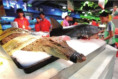 ????昨天,記者提出看超市出售鱷魚的相關(guān)證明,永輝超市的前臺負(fù)責(zé)人劉先生稱,超市從農(nóng)貿(mào)市場購進(jìn)了鱷魚和鯊魚,對方都提供了檢疫報(bào)告和許可證,“賣方提供相關(guān)證明,我們就能進(jìn)貨公開銷售,超市不需要提供證明”。(記者 王奕)