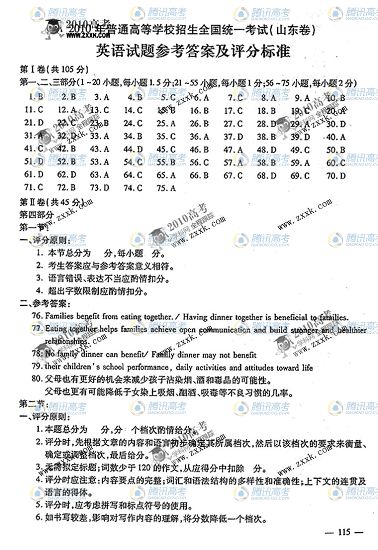 2010年高考英語試題答案公布(山東卷)