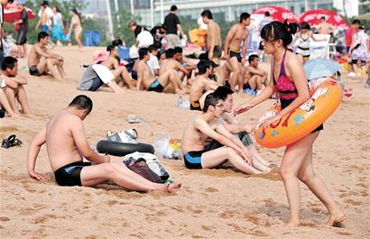 ????心急游客扎堆洗海澡