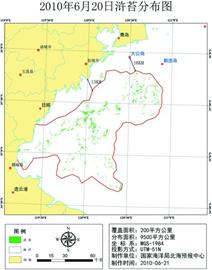 ????據(jù)了解,國家海洋局北海分局自今年3月份開始,利用衛(wèi)星、飛機(jī)、船舶和海洋站對黃海滸苔綠潮進(jìn)行監(jiān)視監(jiān)測,并根據(jù)監(jiān)測結(jié)果進(jìn)行漂移預(yù)測。根據(jù)6月20日的最新監(jiān)測數(shù)據(jù),膠南東南部和大公島東南部海域有較大面積滸苔漂浮,覆蓋面積約200平方公里,分布面積約9500平方公里,分布外緣線距膠南約13公里,距大公島約16公里。