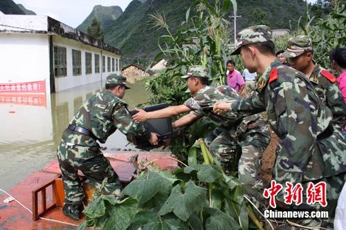 公安武警在為民眾轉(zhuǎn)移物品。