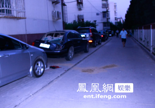 賈宏聲墜樓現(xiàn)場直擊 砸毀轎車下血跡斑斑(圖)