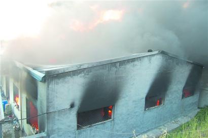 ????記者趕到現(xiàn)場,在大門口就能聞到一股塑料燒焦的味道,從廠門口往里望,可以看到一排起火的彩鋼瓦廠房,靠近大門西排的彩鋼瓦房屋頂被燒穿。消防隊員對失火廠房噴水滅火,并阻止火勢的進(jìn)一步蔓延。一名在該廠打工的中年男子告訴記者,起火的是這家塑料廠的生產(chǎn)車間?!捌鸹鸬臅r候,車間里沒人,也沒人受傷。”這名工人說。記者在采訪過程中,大火借著風(fēng)勢越燒越厲害,很快將近千米的廠房全部引燃。晚7時許,在5輛消防車的撲救下,廠房的大火才被控制住。目前失火原因和損失情況正在進(jìn)一步調(diào)查中。 (牟成梓 孫強 攝影報道)