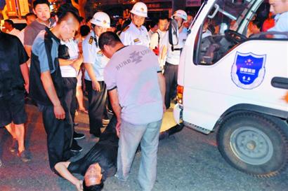 ????執(zhí)法車輛沿書院路向西巡查時(shí),在靠近少山路路口處發(fā)現(xiàn)一個(gè)占路經(jīng)營(yíng)的燒烤攤位。燒烤攤主將10多個(gè)餐桌全部擺放在人行道上,烤肉爐子直接擺到了車行道上。當(dāng)執(zhí)法人員上前將攤主的烤肉爐子收繳時(shí),一名40多歲的男子居然跑到執(zhí)法車前躺倒地上,不讓執(zhí)法車離開。“你們不還我爐子,就別想離開!”這名男攤主開始還坐在執(zhí)法車前方,后來索性躺在左前輪前,阻礙執(zhí)法車?yán)^續(xù)執(zhí)法?!翱焖懔税桑闾稍谶@里好看?”在執(zhí)法人員勸說的間隙,兩名男攤主的朋友跑過來,將攤主拉起來,邊勸邊將其拖離車行道。 記者 趙健鵬 攝影報(bào)道