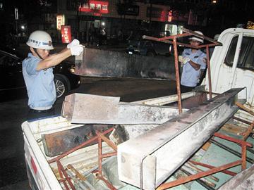 ????“之前已經(jīng)通知你們很多次了,為什么還在這里燒烤,今天必須沒收工具?!睂β愤吔?jīng)營的燒烤攤主簡單解釋后,執(zhí)法人員將燒烤爐、桌椅等經(jīng)營工具一并搬上執(zhí)法車暫扣。