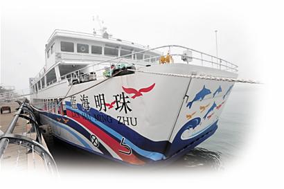 ????即使經(jīng)常乘坐輪渡的乘客,現(xiàn)在走上由輪渡變成的游輪 “藍(lán)海明珠”,也幾乎看不到曾經(jīng)的渡輪影子,雖然整個(gè)船體并沒(méi)有改變,但船艙內(nèi)部卻徹底變換了樣式。原來(lái)簡(jiǎn)單的上下兩層船艙,即上層乘人,下層放車(chē)的格局,現(xiàn)在變成餐廳、舞廳、吧臺(tái)、會(huì)議室等休閑娛樂(lè)設(shè)施搭配組合的豪華游船。