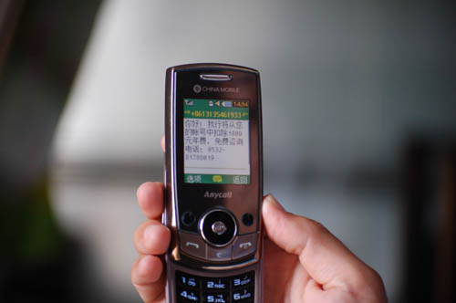 ??? 吳先生沒有著急按照短信提示的電話號碼打過去,而是上網(wǎng)查了查發(fā)短信的手機(jī)號碼13135461933,經(jīng)查,該號碼屬于中國聯(lián)通安徽省淮北地區(qū)的號段。吳先生隨即撥打了短信上留下的那個青島本地的固定電話號碼。接電話的人的口音聽起來是一個年紀(jì)不大的南方女人。電話里的南方女人聲稱吳先生名下的信用卡欠年費1800元。