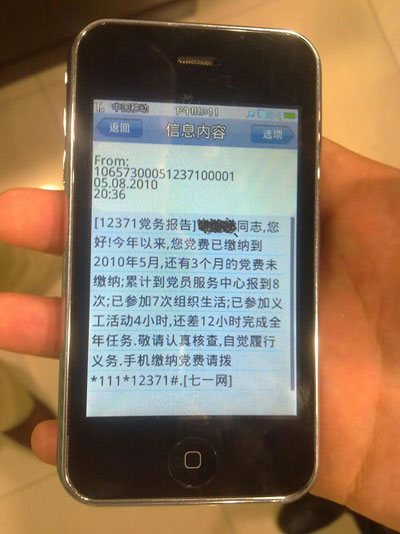 重慶大渡口區(qū)委通過短信收黨費(fèi) 被當(dāng)詐騙(圖)