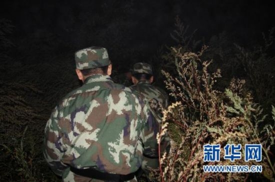 8月25日凌晨,伊春邊防支隊(duì)官兵在飛機(jī)失事現(xiàn)場(chǎng)林中展開拉網(wǎng)式搜救,尋找幸存者。新華社發(fā)(李廣福 攝)