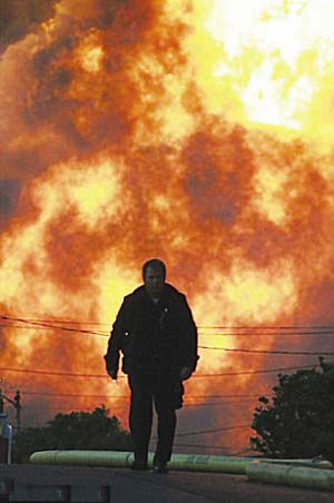 ????美聯(lián)社援引目擊者的話報(bào)道,震天的爆炸聲幾英里外都能聽(tīng)到,威力巨大的爆炸使一個(gè)巨大的火球沖向300多米高空。借助風(fēng)勢(shì),大火很快吞噬附近民宅,熊熊燃燒的火焰高達(dá)10多米,大火造成的高溫讓幾個(gè)街區(qū)外的汽車尾燈都被烤融了,事故現(xiàn)場(chǎng)儼然一幅煉獄景象。