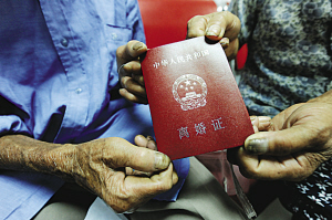 ????“我們算了一下,當(dāng)天前來辦理離婚的人有98對(duì),平常周一最多也就20對(duì),據(jù)我們了解,其中至少80對(duì)夫妻不是真正離婚,而是因?yàn)椴疬w?!苯瓕幓橐龅怯浱幱嘘P(guān)人士告訴記者,最近一個(gè)月來,前來辦理離婚的人都很多,其中有不少人都是古稀老人,由于沒有結(jié)婚證,所以他們都補(bǔ)辦了結(jié)婚證,然后馬上辦理了離婚。