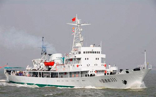 資料圖:中國漁政311巡邏船正在執(zhí)行任務