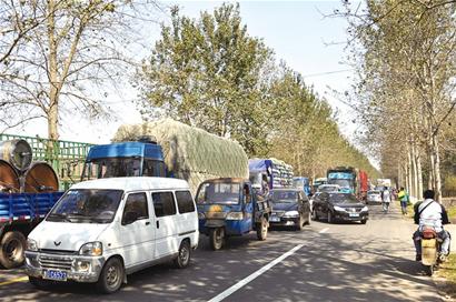 ????昨天上午8時許,在204國道王臺南段發(fā)生一起3車相撞事故,導致3輛運送直徑達10米的白色巨型鍋爐的車輛無法通過,而這3輛“大塊頭”又將其他車輛堵了個結(jié)結(jié)實實,車龍一度排出去10里路。膠南交警緊急趕到現(xiàn)場疏散交通,直到昨天下午1時許,在堵路5個小時后,現(xiàn)場秩序才恢復正常。