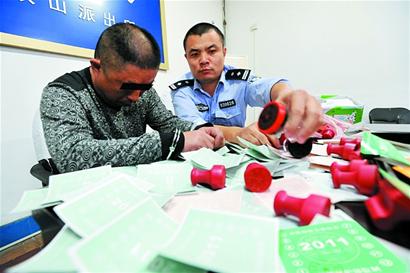 ????經(jīng)審查,42歲的店主嫌疑人呂某交待,他發(fā)現(xiàn)許多超期車輛在年審和二手車交易時,很難通過環(huán)保尾氣檢測,他從網(wǎng)上以每張15元的價格批發(fā)了1000張假黃綠標(biāo)。今年初,呂某向周圍經(jīng)營二手車的業(yè)戶“放消息”:自己認(rèn)識環(huán)保局的人,花50元不用檢驗就能辦出 “黃綠標(biāo)”。1000張假黃綠標(biāo)很快銷售一空,呂某又從網(wǎng)上訂購了一批,半年多時間里,賣出2000多張“黃綠標(biāo)”。昨日中午,警方將給呂某刻制假公章的孫某也抓獲歸案。(記者 趙健鵬 通訊員 張勇 攝影報道)
