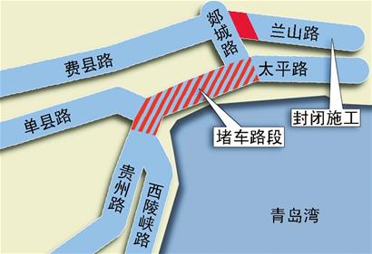 ????“這個(gè)地方本來就是個(gè)交通難點(diǎn),現(xiàn)在蘭山路封閉,就徹底沒了調(diào)流的線路?!弊蛱?,記者從現(xiàn)場施工人員處獲悉,蘭山路封閉工期大約兩個(gè)月,而對(duì)這種狀況,在現(xiàn)場疏導(dǎo)交通的市南交警大隊(duì)中山路中隊(duì)執(zhí)勤民警也很無奈。民警告訴記者,由于廣西路、費(fèi)縣路都是單行線,社會(huì)車輛只能東向西行駛,西向東的車輛只能通過在太平路、西陵峽路、單縣支路交會(huì)處的四岔路口沿太平路行駛,原先不少車輛還可以在郯城路路口左轉(zhuǎn)經(jīng)蘭山路分流至河南路等岔路,可如今蘭山路封閉,所有的車輛都只能沿太平路繼續(xù)行駛。