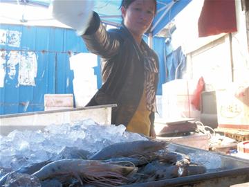 ????“正宗海捕大對(duì)蝦,10元一只啦!”在小港碼頭上,魚販們賣力地吆喝著,這些對(duì)蝦大約有女士的手掌長短,攤主告訴記者每斤大約能稱十個(gè)左右,十分暢銷。一位漁民告訴記者,今年對(duì)蝦形成了蝦汛,漁民大豐收,一網(wǎng)次可捕獲對(duì)蝦100公斤,這是十幾年來所沒有的。