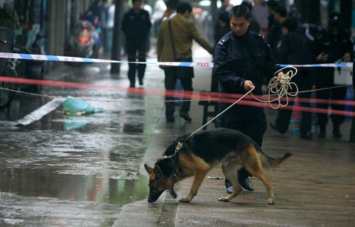 目前兩條警犬到達(dá)現(xiàn)場(chǎng)搜尋,刑警正在現(xiàn)場(chǎng)勘驗(yàn)