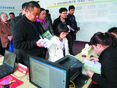 ????填寫選房草單、填寫選房確認(rèn)單、簽訂房屋安置定位協(xié)議……大約半小時,拆遷居民就可辦理完畢拆遷安置手續(xù)?!昂軡M意,很好,過去我們一家四口人住在不到40平方米的小房子里,現(xiàn)在可好了,我選了一套100多平方米的新房,總算舒服了?!蹦玫饺栠x房權(quán)的王老太告訴記者,她和子女特意去新房周邊看了環(huán)境,房子采光好,又緊鄰超市,出門買個東西也方便,選到這處房子特別開心。(于順 張敏)
