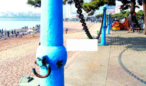 ????10月28日中午,記者來到棧橋,見到了在棧橋工作的趙先生,他告訴記者:“我是27日早晨六點鐘左右發(fā)現(xiàn)的,防護鏈被偷也就是這幾天的事,25、26日風大,我沒來上班,那時候鐵鏈還好好的,27日我一來就發(fā)現(xiàn)防護鏈又被偷了。”