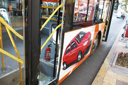 ????在劉先生的指引下,記者在離事故現(xiàn)場(chǎng)100米處找到了造成交通事故的兩輛車。只見公交車后側(cè)車門被撞得凹陷進(jìn)去,車內(nèi)滿是米粒大碎片,綠色的“獵豹”停在公交車后面,車體的橫向保險(xiǎn)杠被撞彎呈90度與車體垂直?!爱?dāng)時(shí)車輛已快到站了,我看馬路右側(cè)內(nèi)車道空著,就想靠過去進(jìn)站,結(jié)果后面這車沒減速就沖了上來(lái),幸好這車門是特殊玻璃制成的,要不然非傷人不可?!惫凰緳C(jī)說。 (王曉先 王壽林 攝影報(bào)道)