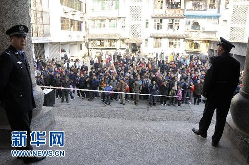 10月31日,鳳凰縣人民法院警戒線外,站滿了關注此案的當?shù)厝罕?。新華社記者 明星 攝