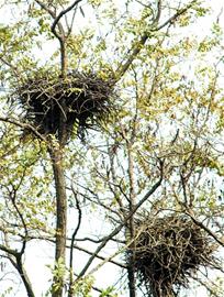 ????“它們越來越不害怕和人類接觸。這一點從喜鵲營巢高度也能體現出來。 ”王希明告訴記者,如今最低的鵲巢高度不足2米,營巢高度較幾年前平均降低了接近2米。最早的時候,喜鵲巢高度一般在8米之上,而如今在一些果園里,喜鵲已在人們伸手可觸的枝頭安家落戶了。