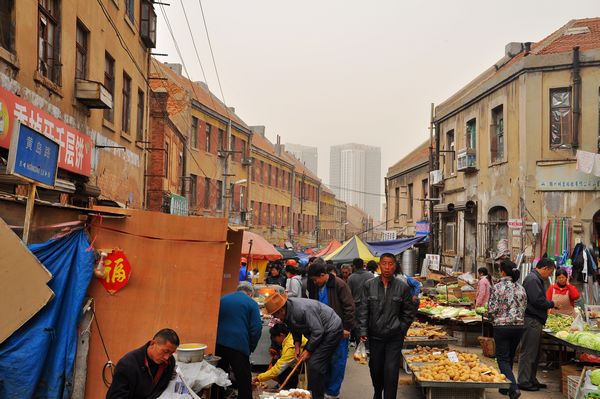 上午時(shí)分,黃島路的市場(chǎng)已經(jīng)非常熱鬧,熙來攘往的人群伴著商販的吆喝聲,充滿市井氣息。