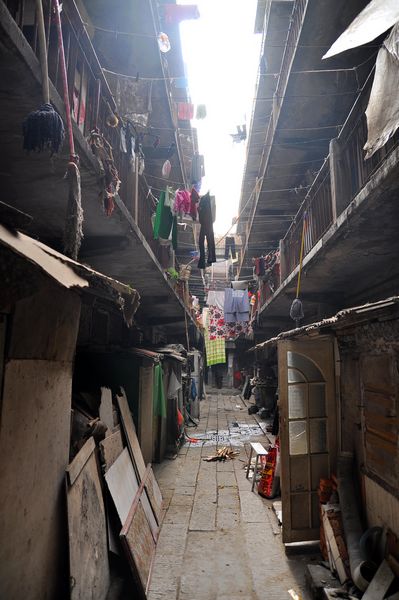 ????走進(jìn)四方路上的一處里院,狹小、擁擠的空間,各種生活用品和雜物堆地滿滿當(dāng)當(dāng)?shù)?,隨處可見風(fēng)化起殼的磚墻,滿眼七零八落的管線。墻體開裂、破損,還有那些臨時(shí)性的修補(bǔ)。“幾乎每天都有來拍照的,破破爛爛有什么好拍的?”看到記者手中的相機(jī),院里的一位大姐對(duì)記者說,據(jù)她介紹,這個(gè)院里住著十幾戶人,每家十幾平方米的面積,使用公用廁所,一起用水龍頭接水喝,她婆婆就出生在這里,在這十幾平方的小屋里,出生了三代人。“有能耐的都搬走了,都租給外地人了,我要是有錢肯定也搬走?!闭f起這些,大姐一臉憤憤。