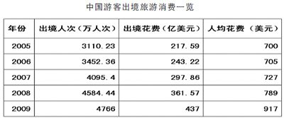 ????有資料顯示,我國出境游客人均境外消費(fèi)支出已超過美、歐、日。根據(jù)環(huán)球退稅公司公布的數(shù)據(jù),2009年,中國游客在法國購買的免稅品總額達(dá)1.58億歐元,比排在第二位的俄羅斯多0.47億歐元。中國旅游研究院預(yù)計(jì),2010年中國出境游人數(shù)將達(dá)5400萬人次,出境旅游花費(fèi)達(dá)480億美元。