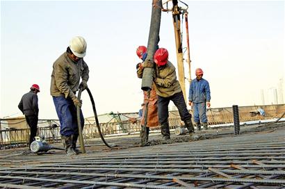 ????記者首先來(lái)到莘縣路靠近廣州路路段,這里是東西快速路三期工程的南端。一東一西兩臺(tái)超大型泵車伸出“大力神臂”,舉向20多米高橋面,向已綁扎好的鋼筋箱梁體內(nèi)灌注混凝土。橋面上,10多名工人操縱泵車有序地澆筑著。