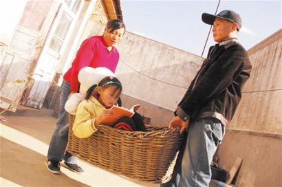 ????王永湖告訴記者,自從女兒得了這種怪病后,他和妻子十分著急。小朝君是一個(gè)非常愛學(xué)習(xí)的孩子,幾天不上課就又哭又鬧,但小朝君的雙腿發(fā)軟根本無法繼續(xù)到學(xué)校上課。為了滿足孩子的愿望,王永湖和妻子想出了一個(gè)辦法,他們用裝玉米的籮筐,放上被子后將女兒放進(jìn)籮筐里,每天早上兩人推著小推車送女兒到3公里外的學(xué)校上課。剛開始小朝君的病情還不經(jīng)常發(fā)作,但這樣過了一個(gè)月,小朝君的病情越發(fā)嚴(yán)重,每天都會在課堂上昏倒數(shù)次,最多一天昏倒20多次。