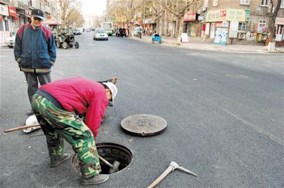 ????“兩天前就開(kāi)始鋪瀝青,瀝青鋪好了,我打掃衛(wèi)生也簡(jiǎn)單多了?!弊蛉沼浾邅?lái)到大連路,負(fù)責(zé)環(huán)衛(wèi)工作的大姐對(duì)記者說(shuō)。記者看到,幾天前還塵土飛揚(yáng)的大連路路面已完全鋪設(shè)瀝青,車輛、行人通行自如,而且馬路也顯得更寬闊了。僅有一兩名工人在現(xiàn)場(chǎng)處理古力蓋加固工作,“瀝青鋪完后,古力蓋要統(tǒng)一提高,與路面達(dá)到同一水平線,然后在鋼圈抹一層混凝土,加固古力蓋,要不然車跑在上面就會(huì)咚咚響?!惫と藢?duì)記者說(shuō)。