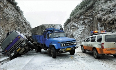 2日,在貴州凱里市的320國(guó)道1895公里處,因路面結(jié)冰,出現(xiàn)事故。新華社發(fā)