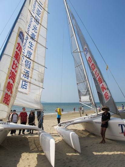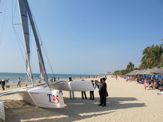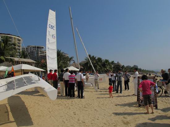 ????“帆船之都海南行”的一大亮點(diǎn)是使用青島自主研發(fā)、生產(chǎn)的T25三體帆船。青島加勒比海帆板帆船俱樂部為此次活動(dòng)陸續(xù)提供8艘總價(jià)值達(dá)240萬元的T25三體帆船。這種由青島自主研發(fā)、自主生產(chǎn)的T25三體帆船最適合海南的沙灘,不用碼頭就可以大面積迅速開展活動(dòng);同時(shí)T25三體帆船的穩(wěn)定、安全、堅(jiān)固、易駕駛的特點(diǎn),最適合帆船初學(xué)者學(xué)習(xí)和帆船運(yùn)動(dòng)普及的一種船型。此帆船已于2010年9月列入青島市第五屆帆船公開賽的一個(gè)級(jí)別的比賽,同年10月也被韓國列入了2010年韓國木浦國際帆船賽的一個(gè)級(jí)別的比賽項(xiàng)目。該船的出色表現(xiàn)得到了國內(nèi)外專業(yè)人士的一致好評(píng)和肯定;