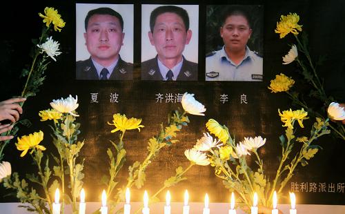 這是泰安“104”持槍殺人案犧牲民警的拼版照片。(左:夏波,男,漢族,1974年6月出生,中共黨員,山東省寧陽縣人,生前任泰安市公安局泰山區(qū)分局刑事偵查大隊偵查三中隊中隊長;中:李良,男,漢族,1986年3月出生,生前在泰安市公安局泰山區(qū)分局岱宗坊派出所擔(dān)任協(xié)勤工作;右:齊洪海,男,漢族,1962年4月出生,中共黨員,山東省泰安市人,生前任泰安市公安局交通警察支隊直屬二大隊科員。)新華社發(fā)