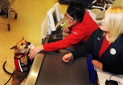 ????這條聰明的小狗不僅能夠讓她更加快樂,還能幫她購物、洗衣甚至支付現(xiàn)金。每當去超市購物,在主人選購商品時,桑迪就會一直叼著購物籃不離左右。而當走到結(jié)帳柜臺時,桑迪甚至可以從主人的錢包中翻出錢并“遞”給目瞪口呆的店員。