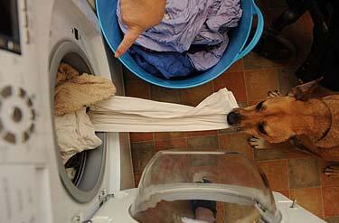 小狗桑迪幫主人洗衣服