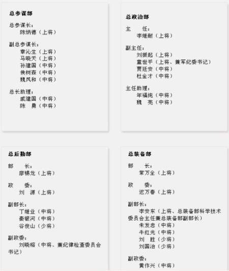 ????中新網1月23日電 國防部官方網站資料顯示,解放軍四總部高層人事近日進行調整,多位履歷豐富的高級將領被充實進領導層。