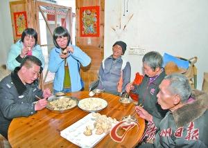 “我在丘芹英家吃年飯已是第4個年頭了。4年前的一次采訪使我和這個家庭結(jié)了緣,也結(jié)下了我的心愿,就是每年春節(jié)都要和丘芹英一家人一起吃個年飯。年二十九上午,忙完手頭的工作后,下午約上梅縣石扇派出所的侯副所長及大森林戶外的多名驢友一起,帶上年貨,和好面,做好餡,騎車20多公里來到丘芹英家,親手包餃子和丘芹英一家人一起吃年飯……”這是梅州驢友何方昨日在自己博客上寫下的一段話。