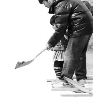 3月22日,在日本宮城縣東松島市,一名小女孩在大人的幫助下向地震和海嘯遇難者的靈柩上撒土。