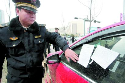 ????“對在人行道上亂停車的,第一次我們一般會貼一個提醒通告,以后才貼罰款單?!睂O林告訴記者,他們發(fā)現(xiàn)占用人行道停車的違法車輛后,將先從信息庫內(nèi)查詢,如果該車曾被提醒過,那么就要進行處罰。根據(jù)我市相關(guān)規(guī)定,對于占用人行道亂停車屢次不改的,城管部門可以采取強制措施,所以如果查到該車累計有3次在人行道亂停車,并未交罰款的,城管部門將直接給予鎖車,強制車主接受處理。