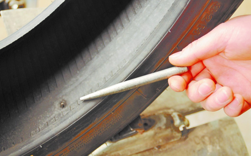 ????據(jù)李女士介紹 ,她的愛(ài)車是一輛夏利N5,“我開(kāi)車時(shí)格外仔細(xì),從買車到現(xiàn)在可以說(shuō)還沒(méi)出過(guò)問(wèn)題?!?月14日早上,李女士準(zhǔn)備開(kāi)車外出時(shí),發(fā)現(xiàn)愛(ài)車左后輪胎癟了下去,“我檢查一下發(fā)現(xiàn)車胎是被一個(gè)螺絲釘給扎的,因?yàn)橛屑笔?,我只好讓父親幫著把備用胎給換上?!?月16日,李女士帶著這個(gè)被扎的輪胎來(lái)到威海路上一家修理廠補(bǔ)胎,補(bǔ)好后,工人將其更換上。