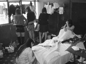 大衣柜門后是條走廊,口子上放了張吧臺,走廊兩邊都是包間,有些門敞著,有些關(guān)著。而在門口則放著幾張床,上面或坐或臥著十多名賣淫女?!跋壬憧梢噪S意挑選。”吧臺的服務(wù)員說。最后暗訪民警以沒挑中為由退了出來。