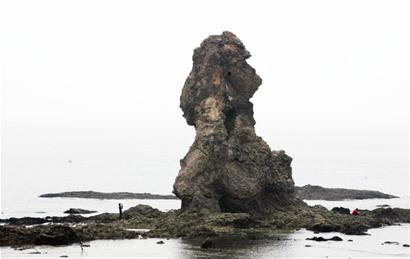 ????在青島嶗山午山腳下臨海斷崖南側(cè),距離岸邊百米處有一座17米高的石柱,形如老人坐在碧波之中,人稱“石老人”。老公公以手托腮,注目凝神,每天晨迎旭日,暮送晚霞,伴著潮起潮落,歷盡滄桑,不知度過了多少歲月。關(guān)于這塊奇石的傳說吸引了許多游人來此觀賞,然而度過了千年萬年,石老人在歲月中顯出了“老態(tài)”?!笆先孙L化嚴重,時不時往下掉石塊,真擔心長此以往,這處自然景觀將消失在海上?!弊蛉?,家住嶗山的市民秦先生表示了他的擔憂,他覺得這處獨一無二的景觀應該進行保護。